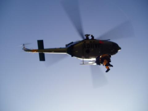 事故者をヘリでピックアップ