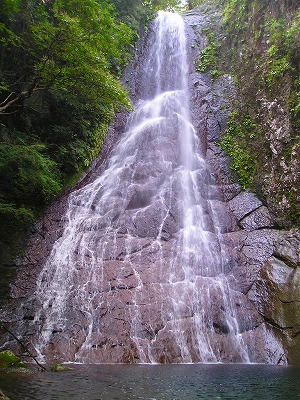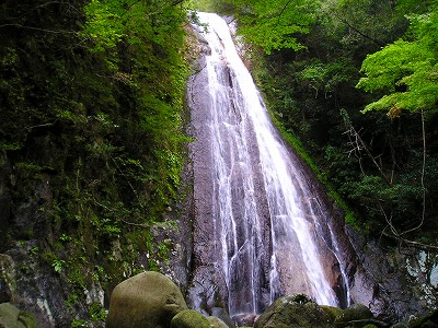 一日目の泊地までのコースタイムが2時間半ほどなので、朝発にして南紀へ向かう。途中24時間営業のスーパーで買い物も済ませ、それからまだ長い道のりを経て一度通りすぎてしまった子ノ泊山登山口に到着。他に車は無く、脇に寄せて駐車し準備後出発。植林帯の中の道を行き巨岩帯あたりから入渓。最初は水も少なく、小さい倉庫程もある岩の間をアリの様に這い登り進む。やがて最初の滝源助滝が見えてきた。右岸を巻こうと岸に上がるが大きな岩をいくつか越えた所で行く手にさらに大きな岩が壁になっており、改めて遡行図を見るとこの滝は見物だけで、ルートとしては登山道に戻りケヤキ平まで行くらしい。