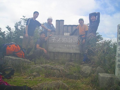 所々で作業道?獣道?のようなものがあるが続かない。やがて無事枝沢に突き当たり、下りの際に履き替えたのをまた沢靴にもどさなくてもいいような小さな沢で二重にホッとする。しばらく下るうちにやがてテープも出て来てどうやら登山道に戻ったらしい。ようやくケヤキ平に着きひと息入れる。 ここからは一度たどった登山道を下るのでもう安心だ。時々腐りかけの木橋に肝を少し冷やしながら降り始めてすぐ2人パーティが休憩していた。岩田さんが話し掛け、後で聞くと地元の人らしく登山道で迷った話をしたら判りにくいでしょう、と言っておられたとか。今回会ったのはこの方達だけだった。最後まで頂上にあった山名の看板の立派さとはアンバランスないかにも山道らしい登山道を辿って登山口に到着。和歌山ナンバーの車が泊まっていた。帰りにわたらせ温泉で汗を流し、また長い道のりを大阪へ。