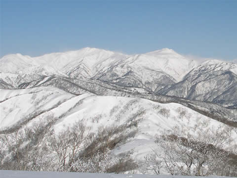 足慣らしにゲレンデを1本滑ってから入山開始。軽いラッセルはあったものの、あっけなく山頂着。白山を始め、360度の展望を楽しむ。