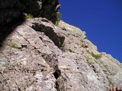 8P~10P目、クラックからリッジ、フェースを登り、ゴジラの背?状リッジを進み終了点に着く。