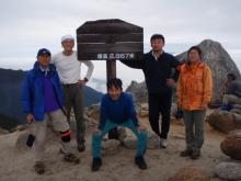 今回のメンバーは岩を20年ぶりに復活したOBの田口さん、フリーはやるが人工登攀は初めての前田さん(無所属)、そして当会の飯窪(赤蜘蛛3回目)、岩田、紅一点谷岡の5名である。