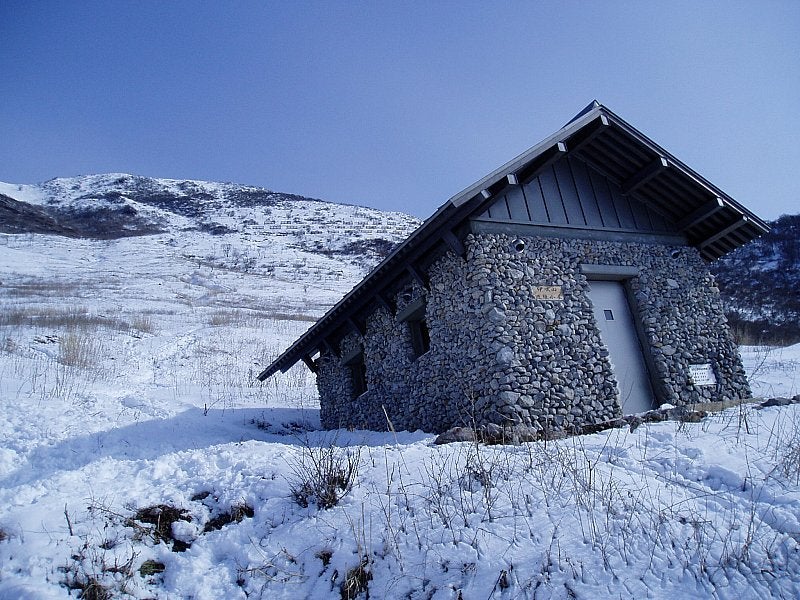 6合目くらいまで登ると登山道には小屋が新設されていた。おー、石で囲まれていてなかなか立派な小屋です。