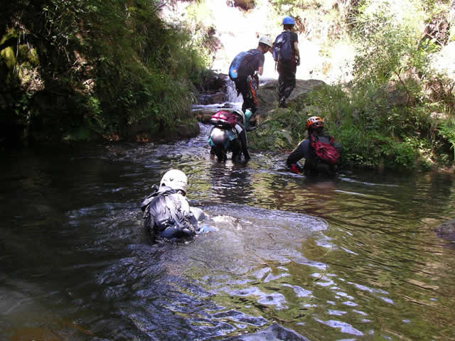 芦屋ゲートで身支度して車道を下る。30分ほど下ったところから少し藪こぎして入渓。水は少し濁り、底はヌルヌルと沢登りにはつらい条件だ。水温が高いのがせめてもの救いだ。