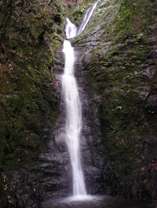 再び沢に戻ると流れは穏やかになる。次の淵を 突破す気になれず、左岸の登山道に逃れる。少し登ると20mの毘沙門滝に至る。また沢身に戻るが薮が出てきたので遡行終了。沢沿いの登山道を下る。