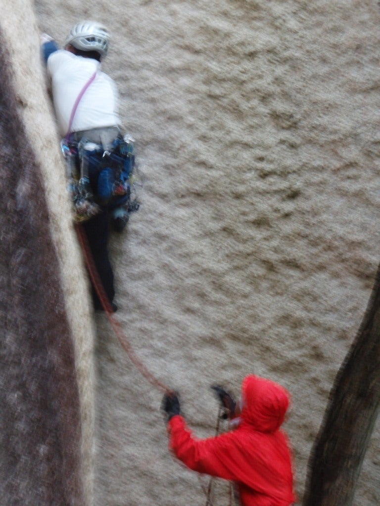 「フェニックスの大岩」と「小川山レイバック」を登る。