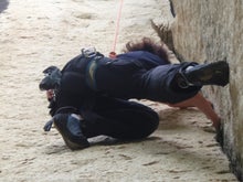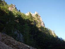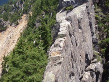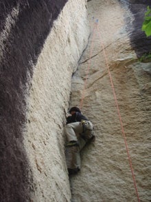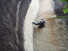 18P目、チムニーとしか情報がないのでずりずり楽しめるのかな、と想像していた。が、とんでもない、野木さんがカムを決め、ホリケンがザックを外して共同作業で登っていった。う~ん、こりゃ無理無理、ビレイしてもらったあげく最後は引き上げてもらう。