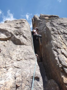 1回目の懸垂で後続パーティに追いつかれ、せかしてロープを残置ビナから外そうとするので、ちょっと待ったを3回ぐらい叫んだ。17P目のワイドクラック、私の背ではリーチがちょいきつかった。