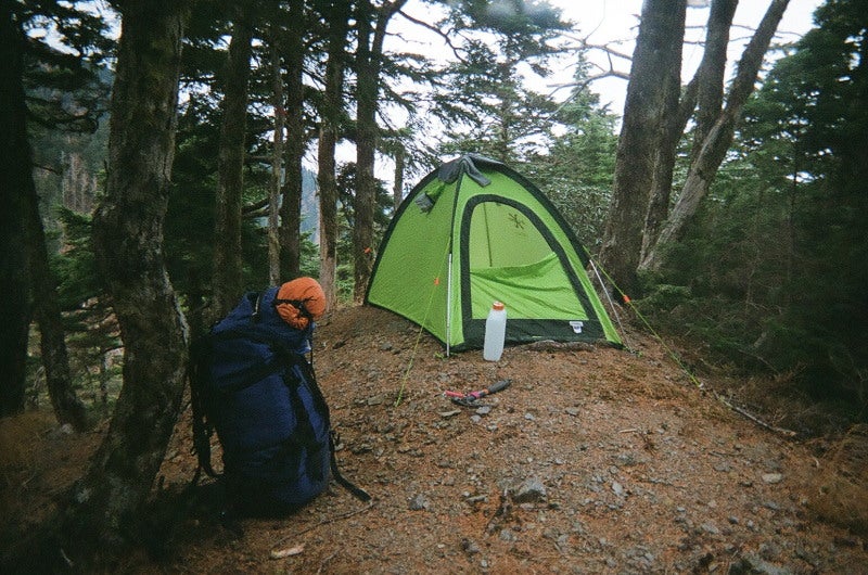 城峰に1-2人用テントスペースがあり幕営