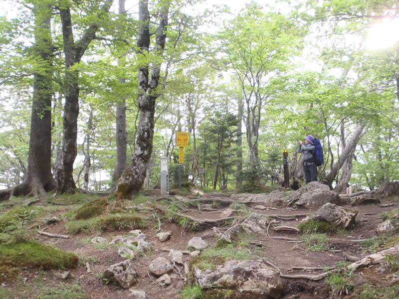 前回は吉野から十津川に抜けたが、この度は行者還トンネル西口からの往復である。登山口から5分ほど登ったところにある小橋の下の沢で給水、急な登り40分ほどで稜線の奥駈道に出合う。弥山の手前まではカエデなどの広葉樹が多い明るい樹林帯で、標高1700mあたりからはもみの木のような針葉樹が多い樹林帯になる。八経ヶ岳(日本百名山で近畿最高峰)までは登山者も多い様で道も良く楽々登頂となる。ここまでなら日帰りの山だ。