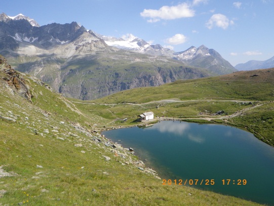 ヒュッテに着いてパスポートを受け取ると、岩田まは「ツエルマットまで降りよう」と言う。岩田しはヒュッテで泊まりたかったが逆らえない。ワインを飲んでいる登山者を横目に見て歩き出す。シュヴァルツゼーではホテルの灯りだけが点いてロープウェイは止まっている。宿泊者は美味しい料理を食べているんやろうなあと想像しながら、ツエルマットへのハイキング道を降りる。