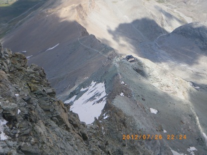 ヘルンリヒュッテが見えて来た 下降して来たルートを振り返るも?