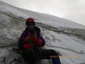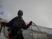 懸垂で下った時も迷ったが、登りもルートファイファインディング難しく、もう1pロープをフィックスし登る。登りきったところで、もう安心と思ったが、ここから稜線ぞいにミディへもどるルートもガスっていたこともあり迷う。