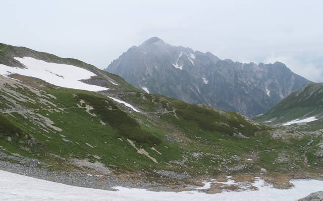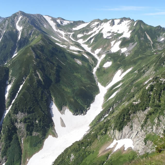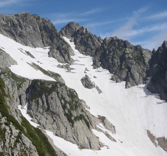 [タイム] (3:30)剱沢キャンプ場 (4:45)長次郎谷 (8:00)V, VIのコル (8:20)V, VIのコルより下山開始 (9:10)剱沢雪渓 (11:00)剱沢キャンプ場 (12:40)剱沢キャンプ場発 (13:30)剱御前小舎 (14:30)雷鳥平 (15:40)室堂着