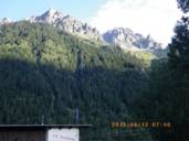 今日は赤い針峰群の登攀に行く。ミディ針峰群の対岸にある針峰群で、岩登りを楽しめる所だ。我々が目指すのはシャペル・ド・ラ・グリエール、14Pの中級の針峰である。野木・和田コンビは隣のランデックス針峰に行くので、4人でアパートを出る。レ・プラまでバス、ランデックスまではロープウェイとリフトで上がる。ランデックスの駅から左へトラバース道を歩くと直ぐに二人は取付きへ、我々はそれから約15分歩くと取付きのルンゼが見えるのでそれを登る。