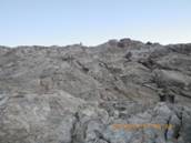 稜線に出ると約20mごとに鉄の杭が打ってある。踏み跡ばっちりで、なぜか傾斜の強い雪面を登るパーティがほとんどなので、我々は岩場で高度を稼ぐ。雪が多い時はこの杭を支点に使うのかもしれない。突然お腹の緩い修一は我慢できないと岩陰に。雪稜を後続パーティが先に行く。