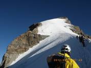 日本に帰ったら好きな乳製品を断つよう約束する。頂上は座るスペースがあったので小休止。7月20日のスイス入り後、今回で雪と岩の山は終了。無計画な山行ばかりだったが、2人とも怪我一つなく過ごせたことに安堵する。