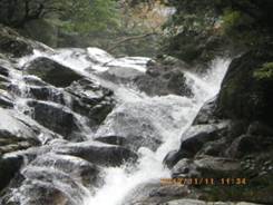 朝起きると夜中からの雨は降り続いている。縦走にそなえカッパも濡らしたくないこともあり、小雨になるのを待ち9時前に出発。レンタカーで白谷雲水峽に向かう。駐車場に着くとすでに出発したお客さんを待つバスの運転手が暇を持て余している。また降ってきたのでひと寝入り。11時を過ぎようやく小雨になってきたので出発する。おかげで人気も少なく静かにしっとりとした苔の森を歩ける。遊歩道は白谷川に沿っており、川の中央にある『憩いの大岩』は広場のようで明るい。『飛流落としの滝』は花崗岩の渓谷を名の通り白いしぶきが見事な斜滝である。