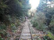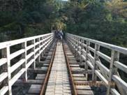 武田尾の廃線跡の道と似ている。前を若い女性が同じペースで歩いている。案の定、橋の上で写真撮影をしているところをつかさず、岩田しは「撮りましょうか!」。女性「わぁ、お願いします!」。