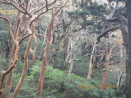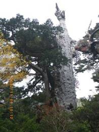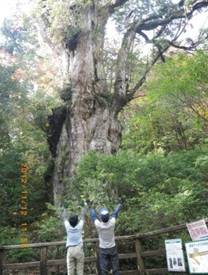 縄文杉の展望台で先の女性2人に出会い、ガイドさんに薦められたというポーズで写真を撮ってもらう。前日たまたま見た新聞に、縄文杉の枝が腐って落下する危険があると書いていたがはっきり分からなかった。