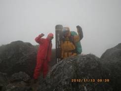 笹原をしばらく歩くと宮之浦岳頂上へ。ここも景色は無く風が強い。写真もまともに撮れない。