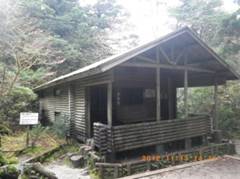 淀川小屋も新高塚小屋と同じで広い板間で二段造りになっている。どちらもきれいに管理され、水場とトイレがありゆっくりできる。昨夜はねずみのカリカリする音が聞こえたがこの日は聞こえなかった。