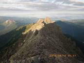 穂高岳山荘(4:55発)~奥穂高岳(5:30着 5:43発)ジャンダルム(7:08着 7:20発)~天狗のコル(9:00着 9:20発)~間ノ岳(10:50着)~西穂高岳(12:40着)~独標(14:18着)~西穂山荘(15:25着テント泊)