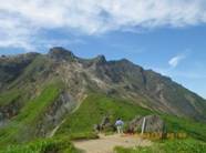 さあ、今日は縦走の最終日。中ノ湯まで6時間の行程である。上高地へ降りる道と分かれ中尾峠への道に入ると、いっぺんに道が悪くなる。途中で小学校低学年の女の子と父親を追い抜いたが、大丈夫か心配になる。引き返していれば良いのだが・・・。(可哀想だがあの女の子は絶対に山を嫌いになるであろうと思った)中尾峠からは百名山である焼岳への道はさすがにしっかりしており、頂上では意外に若者が多かった。
