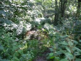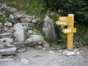 広河原取水口に到着。標高1190m。ここで林道は終わり、小径を進んでいく。少し行くと小倉谷出合いに到着。ここから小径も分かりにくくなる。少しそのまますすんでいくが、きつくなる。