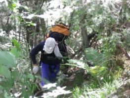 遡行準備をしていてここから本流に下るのかな? 僕らは、軌道跡と思われる小径を進んでいく。