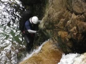この後、10mの滝は滝の左側が階段状になっているので、難なく登っていく。