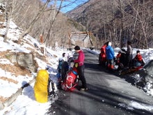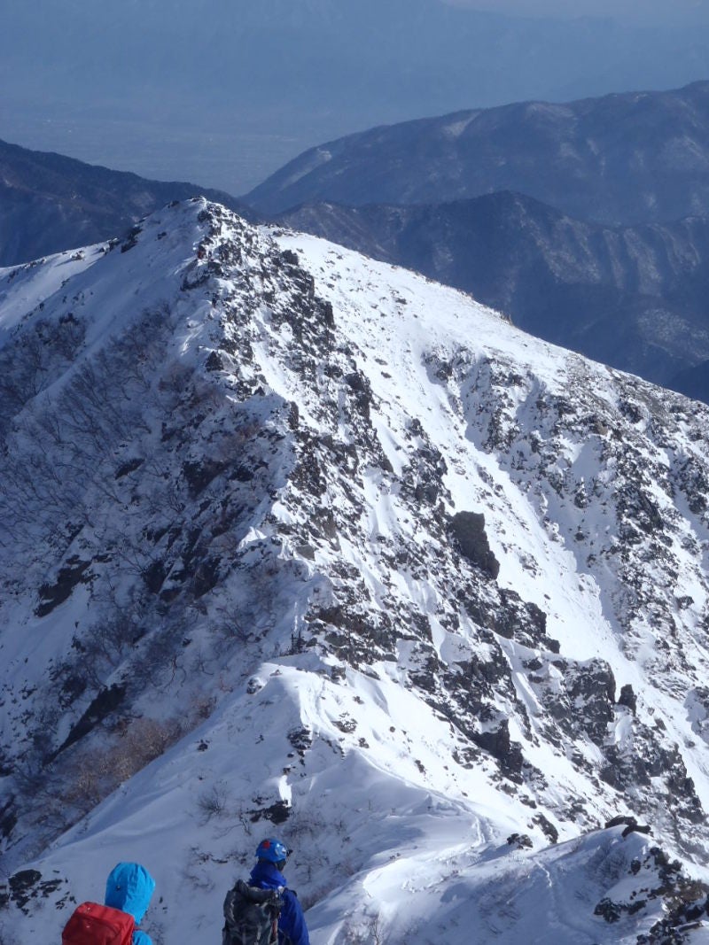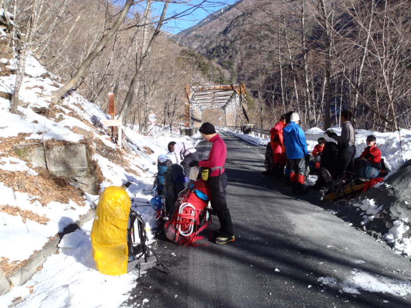 野呂川を越えて鷲ノ住山への登りが今日の核心部です。下山で400mも登り返すなんて、他ではなかなか無いと思います。後は林道を適当に歩いて駐車場に到着。冬山合宿を無事に終えるとことが出来ました。お疲れ様でした。