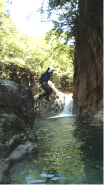 谷尻谷からCS2か所でロープを出し、ショルダーを活用しながら去年は巻いた滝も今年は巻かずに進む。コリカキ場から尾根を越えて神崎川を下る。途中で林道に上がることも可能だが、あの林道を長く歩きたくはないので、取水堰堤まで沢沿いを進むことにする。ゆったり川下りをしようとするが、プカプカ浮いてもすぐに座礁するのでうまく下れない。結局歩く。飛び込む箇所も楽しみながら、案外長い道のりを取水堰堤まで下り、林道を歩いて終了。お疲れ様でした。