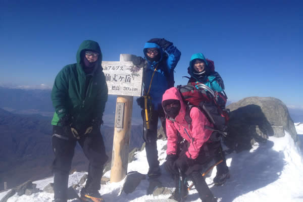 初参加の合宿は終始お天気に恵まれ、山頂で眺めたアルプスの白い山々や、大きく美しい仙丈ヶ岳など、大変心に残るものだった。