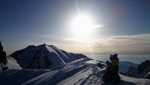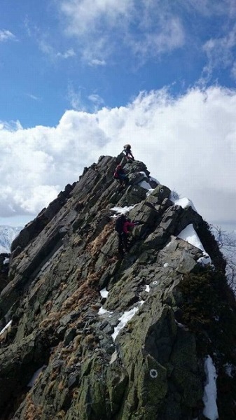 今日中に大阪に帰ろうと、5時起床、6時半出発。南岳を越えて、中岳、大喰岳へ。年末よりも雪が多くて歩きやすい。槍ヶ岳山荘で、穂先に行くかどうか迷うが、せっかくなので、4人で行くことにする。穂先から下ってきて、さあ下山というときに、YYが2人組に話しかけられているのが見えた。師匠との感動の再会だったそうで、師匠につられて、YYもウルウルしていた。