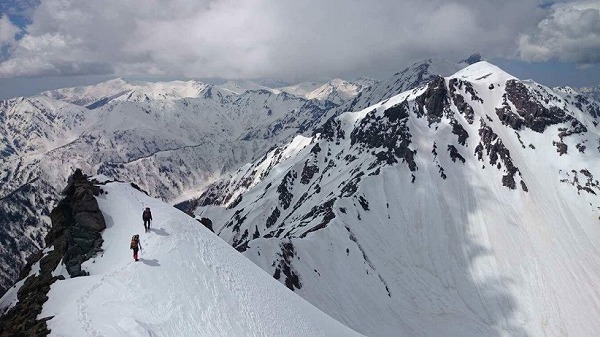 雪もゆるんできたので、飛騨沢はやめて、中崎尾根を下る。縦走したルートが良く見えて、あんなところを歩いたんだと改めて思う。ときどき、足元の雪が崩れて、飛騨沢側に雪崩れていくが、今日の雪崩はそれほど大きくなることもなく、途中で止まる。秋に偵察に来た時に、テント張れそうと話していた尾根上の平らなところに、ダンロップの8テンが張ってあった。千丈沢乗越を下った斜面にデポしてあったワカンと、このテントは、学生さんのものかなと言いながら横を通り過ぎる。中崎尾根は雪が多く、登りはラッセルが大変そうと思った。槍平小屋、滝谷出合を越えて白出沢出合のところで林道に出て、新穂高まで林道を歩く。中崎山荘でお風呂に入って、大阪まで帰る。終電に間に合うようにと、KHが、休憩なしで大阪まで一気に運転してくれた。ありがとうございます。